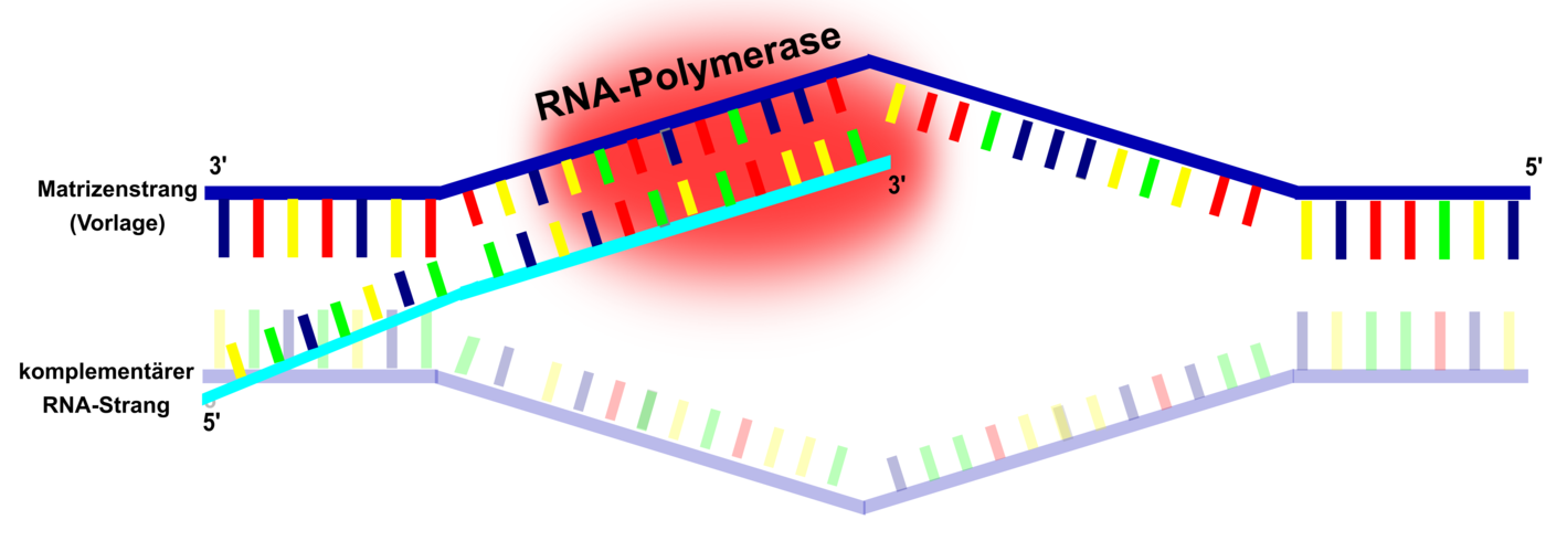 Transkription leitet sich vom lateinischen Begriff „umschreiben“ ab. Im ersten Schritt der Proteinbiosynthese wird die DNA bzw. das Gen durch die Transkription „abgeschrieben“.