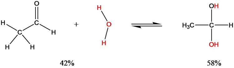 Wasser + Aldehyd $\rightleftharpoons$ Aldehydhydrat
