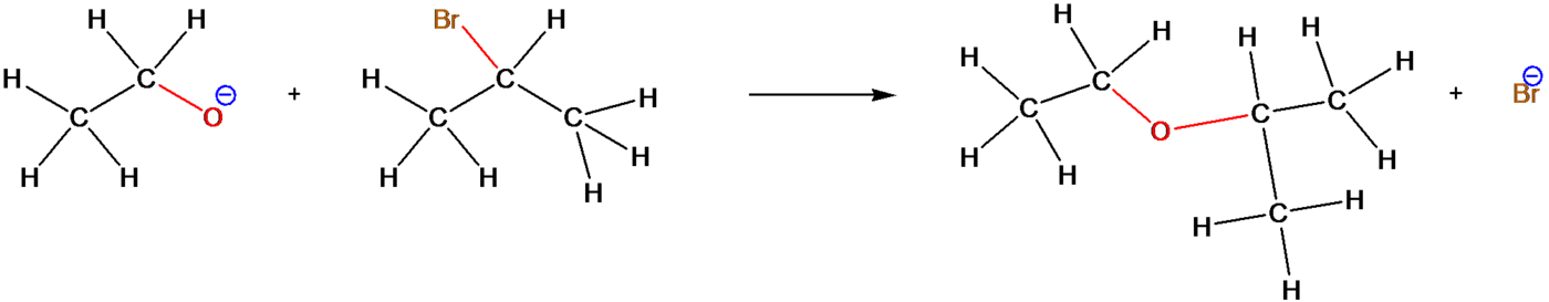 Ein Beispiel der Williamson-Synthese: Ethanolat und 2-Brom-Propan reagieren zum Ethyl-Isopropylether